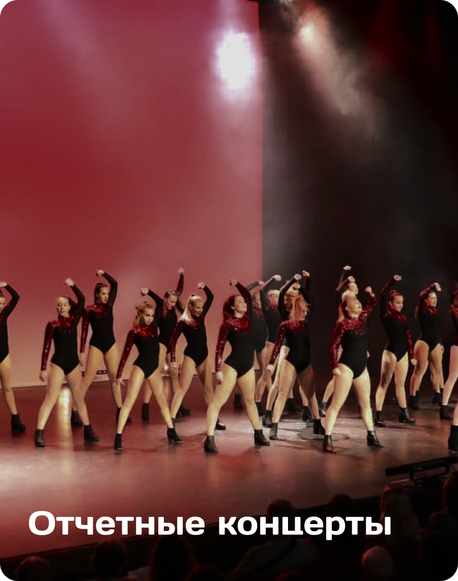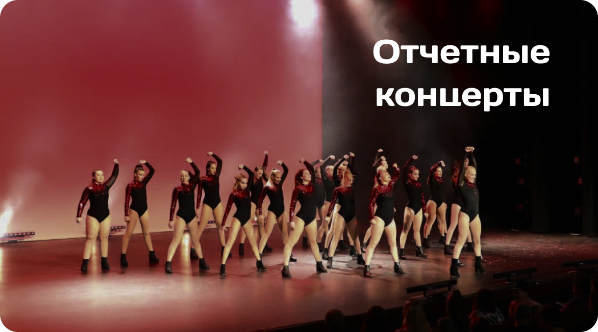 Выступить на отчетном концерте может абсолютно каждая. Этот концерт не для профессионалов, а для любителей и новичков, таких же как и вы. Вместе с педагогами вы сможете подготовить номер и выступить на сцене перед своими друзьями и родственниками. Поверьте, это непередаваемые эмоции!